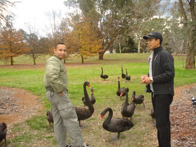 Minggu lepas, sahabat aku dari Malaysia iaitu Kapt Fedzrol Norazam dan isteri datang bercuti jalan2 kat sini. Diorg stay kat umah aku for 2 nights setelah jalan2 dari Melbourne dan akan bergerak ke Sydney sebelum bertolak balik ke Msia dari Melbourne Airport. Acara seperti biasa utk program ni..hehehehe..bawak jalan2 sekitar Canberra. Kapt Fedzrol ni merupakan rakan satu kursus masa jadi kadet kat RMC Duntroon..skang ni dah jadi pilot dalam PUTD. Leh la kawan2 nak tumpang naik heli nanti..hehehehe..